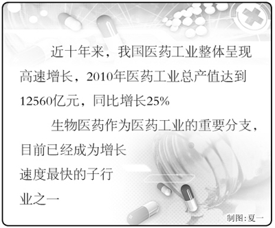 国家加大扶持力度,引导鼓励技术升级,金融体系支持、社会资金投入无疑将为医药行业的蓬勃发展提供巨大动力。生物医药行业与人类健康息息相关,消费的需求潜力巨大,难以估量。近10年来,我国医药工业整体呈高速增长态势,2010年医药工业总产值达到12560亿元,同比增长25%,远高于同期GDP的增速。生物医药作为医药工业的重要分支,目前已经成为增长速度最快的子行业之一。