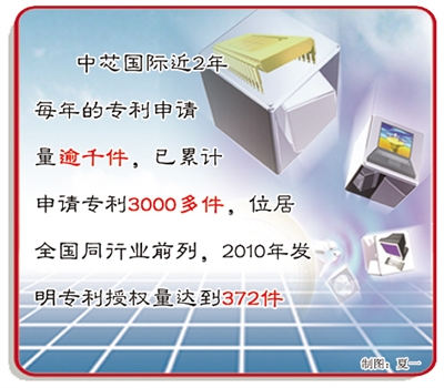 小到手机、电脑,大到飞机、高铁,随着信息化的快速推进越来越离不开集成电路,而芯片制造是集成电路产业的核心。作为国内技术领先的集成电路代工企业,中芯国际集成电路制造(上海)有限公司将创新作为企业的灵魂,专利申请数量持续增长,近2年每年的专利申请量逾千件,已累计申请专利3000多件,位居全国同行业前列,2010年发明专利授权量达到372件。