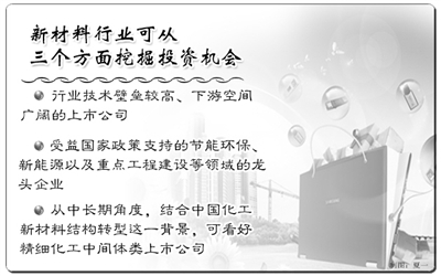 关于在新材料领域的投资布局,东方证券认为,未来成功的新材料公司需要具备六大条件:对上游资源垄断的公司、具高技术壁垒的公司、在行业中可以产生规模效应的公司、能将上中下产业链重新整合的公司、定位于细分市场竞争对手少的公司、受益于国家新政策符合节能环保要求的公司。