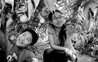 河北永清县韩村镇杨家营村大棚内两位游客正在采摘温室油桃。该村大力扶植农民发展特色种植,提升果品的品质,使科技棚桃提前上市,引来了一批又一批外地游客前来采摘,经济效益十分可观。 本报记者 李景录 通讯员 李丙辉摄影报道