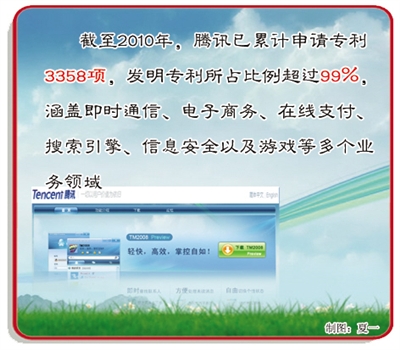 自1999年推出即时通信QQ以来,腾讯凭借一项又一项发明与创新,打造起我国最大的网络社区。截至2010年底,QQ即时通信的活跃账户数达到6.476亿,这一数字远远超过我国4.573亿的互联网用户总数。在国家知识产权局公布的2010年发明专利授权量内地企业排名中,它又是唯一进入十强榜单的互联网企业。腾讯的成长,深刻地影响和改变了数亿网民的生活习惯,并为我国互联网发展注入了活力。