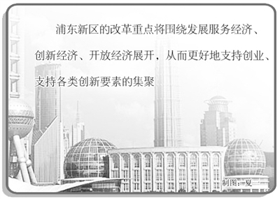 上海市委常委、浦东新区区委书记徐麟说:“对于浦东的明天,我们提出了三个目标,就是‘转型促功能,改革当先锋,群众更幸福’。下一步,浦东的改革重点将围绕发展服务经济、创新经济、开放经济展开,从而更好地支持创业,支持各类创新要素的集聚。”