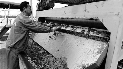 “滇池蓝藻移动式打捞暨无害化处理示范工程”取得初步成效。图为工人在进行蓝藻藻泥的无害化处理。 新华社记者 秦 晴摄