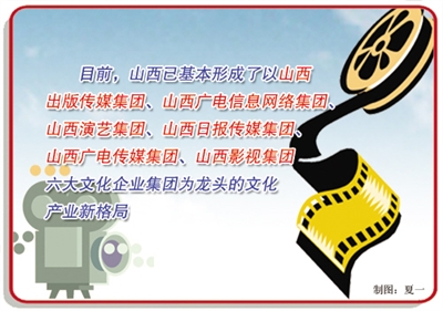 建设一批有实力、有竞争力、有影响力的国有或国有控股文化企业和企业集团,是山西新一轮文化体制改革的成果。按照中央部署的文化体制改革的“时间表”、“路线图”、“任务书”,2009年山西文化体制改革三年任务两年完成,走在了全国前列。山西创造的领导决策驱动、舆论造势驱动、政策保障驱动和督导检查驱动“四轮驱动”改革经验受到普遍认可。去年,山西决定继续深化文化体制改革,组建五大文化企业集团。山西省委书记袁纯清指出,文化发展要做山西转型跨越发展的“先头部队”,并提出了山西文化建设要大片大作大戏表现、大集团运作、大景点支撑、大服务引领、大会展集聚的“五大战略”,要求把组建五大文化产业集团作为改革的主要着力点和突破口。省长王君提出“要像重视煤炭一样重视文化产业发展”,并担任山西省文化体制改革和文化产业发展领导组组长,要求在深化文化体制改革、文化产业发展、文化精品创作、公共文化服务体系建设、发展新型业态等方面取得“五个新进展”,以此带动全省文化体制改革和文化产业发展。