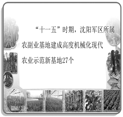 军区所有农副业基地,旱田90%实现高度机械化,水田基本实现全程机械化。农副业基地所创效益,由原来的每年7000万元增加到2亿多元