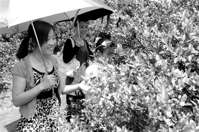 城在花中,橘香满城。时下,江西南丰县70万亩橘树竞相开花,成为花的海洋,一批批游客来到橘园,游园赏花,感受橘花的芳香。图为来自福建的游客在南丰县太和镇丹阳村橘园赏花。 本报记者 赖永峰 通讯员 邓国云摄影报道