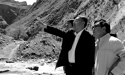 图4:2010年,李佩成(中)在新疆玛纳斯流域进行旱区水文生态与水安全考察。
