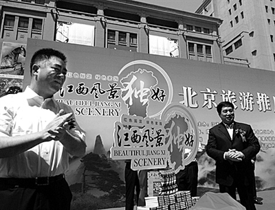 5月15日上午,“江西风景独好”联合旅游促销活动在北京王府井大街举行。江西山清水秀,独特的地理结构、厚重的文化传承、优良的生态环境使江西的旅游资源位居全国前列,拥有“四大名山”(庐山、井冈山、三清山、龙虎山),“四个千年”(千年瓷都景德镇、千年名楼滕王阁、千年书院白鹿洞、千年古寺东林寺)和“一湖”(中国最大的淡水湖鄱阳湖)、“一村”(中国最美的乡村婺源)等大批国内乃至世界一流的文化旅游资源。