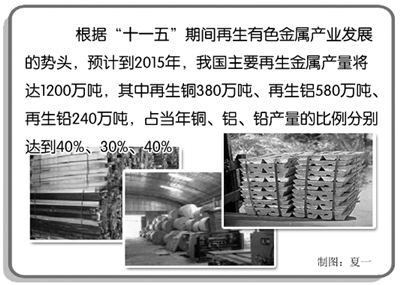 2011年1月,工信部、科技部和财政部联合发布了《再生有色金属产业发展推进计划》,进一步地明确和提升了再生有色金属产业在“十二五”国家发展规划中的显著地位和重要作用。可以预见,再生有色金属产业在“十二五”期间将大有可为。