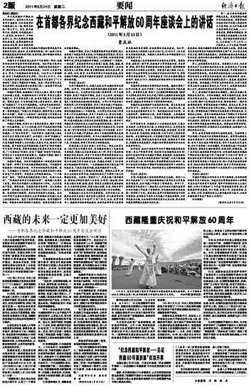 在首都各界纪念西藏和平解放60周年座谈会上的讲话