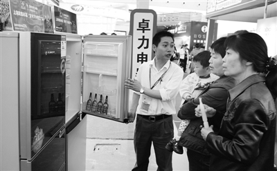 一位参展商正在向参观者介绍产品。2011中国慈溪家电博览会日前在慈溪会展中心举行,展会吸引了国内外众多的家电生产厂商、采购商前来参观、采购。 陈邦强摄