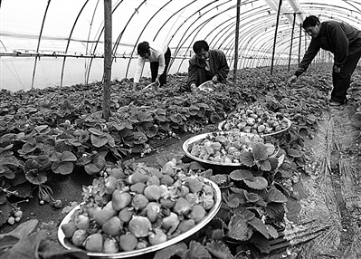 上图 荆州市城郊李埠镇大棚草莓丰收。