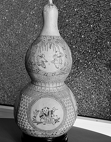 图3:李玉成以儿童为题材制作的葫芦雕刻作品。