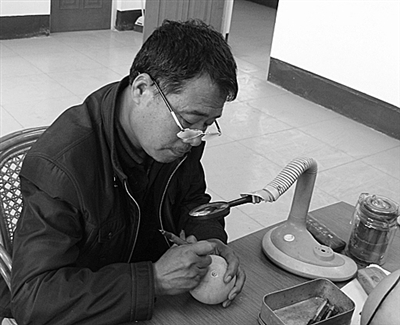 谈及家族的葫芦雕刻史,今年56岁的李玉成充满自豪。从小就在家族雕刻葫芦的浓厚氛围里长大的他特别喜欢美术和雕刻,而且他还有幸成为了李尚贤的学生。从学期间,他反复观察、揣摩李尚贤的每一件作品,并精心收集绘有各种图案的葫芦样本,不断加以练习。在5年的学习时间里,李玉成画了3000张素描,刻坏了5大麻袋葫芦。功夫不负有心人,经过多年的精雕细琢的锻炼,他渐渐成为东昌葫芦雕刻领域的佼佼者。