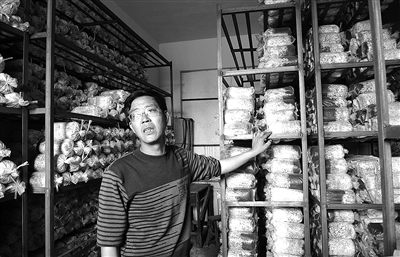 那么,一栋食用菌大棚的收益又如何呢?村民宰长有算了一笔账:一栋大棚可栽培8000个菌棒,一个菌棒的原料成本为1.8元,主要是砍柴和管理务工费,以及棉籽壳、玉米芯、农作物秸秆等原料费,共需投入15000元。而一个菌棒一年能生产1.5两木耳,一个大棚就是1200斤,去年的市场收购价是每斤50元至60元,每个大棚的毛收入能达到六七万元,今年的市场价还要看涨。这比我过去外出打工的收入要高好几倍,以前全家三口人一年收入1万元左右。一栋大棚能使用七八年,就是说我家今后每年都能稳定地有这么多收入。宰长有在讲述中欣喜的心情溢于言表。