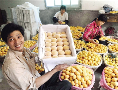 右下图 洋边村的枇杷全国驰名。收获季节,该村家家户户都在收获、装箱枇杷。