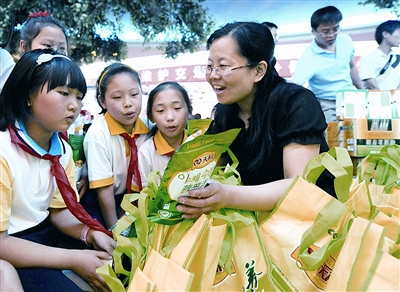 由商务部、教育部、卫生部等单位联合主办的“为了孩子——全国青少年儿童食品安全与营养科普宣传推广月活动”近日启动。据介绍,活动选择全国100家超市作为科普宣教基地,邀请营养专家、学生代表和食品生产企业共同参与,传播食品营养健康知识。这是营养专家在给学生代表讲解食品营养知识。 本报记者 赵 晶摄