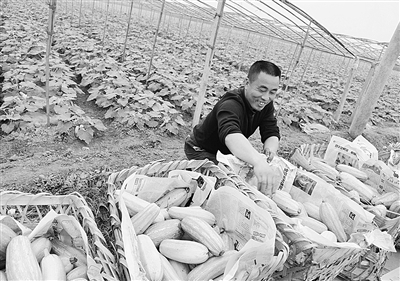 上图 四川省眉山市东坡区云兴蔬菜专业合作社经理冷保云正在基地采摘葫芦瓜。 喻 剑 姚永亮供图