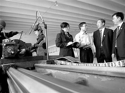 黑龙江省大庆市高新区法院多年来坚持深入辖区机关、企事业单位走访调研,帮助各单位解决实际问题。图为该院民二庭法官在汉维风力发电成套设备(大庆)有限公司进行普法宣传。 本报记者 张 欣摄