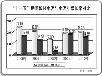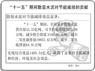 在日前举办的2011中国散装水泥产业可持续发展研讨会上,商务部商贸服务管理司副司长张蜀东介绍说,“十一五”期间,全国散装水泥快速发展,社会和经济效益显著,为节能减排、保护环境,建设资源节约型和社会友好型社会作出重要贡献。