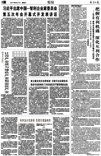 习近平出席中国—智利企业家委员会 第五次年会开幕式并发表讲话