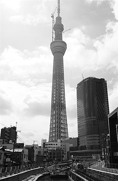 这是6月8日在日本东京都墨田区拍摄的“东京天空树”。 “东京天空树”运营企业日前宣布,被称为“东京天空树”的新电视塔将于明年5月22日开业。“东京天空树”位于东京都墨田区,建成后高达634米。 新华社发