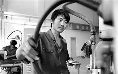 6月14日,河北省三河市燕京职业技术学院学生在车间实践操作。该学院注重教学质量,并配有大型数控加工中心、激光切割机、焊接机器人等先进的实习设备,毕业生广受欢迎。 本报记者 李景录摄