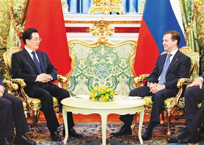 胡锦涛指出,未来10年是中俄两国发展振兴的关键时期,全面深化中俄战略协作伙伴关系面临重要机遇。中方始终坚持把中俄关系作为对外工作的主要优先方向,愿同俄方一道,在下一个10年加倍努力,发展平等信任、相互支持、共同繁荣、世代友好的全面战略协作伙伴关系。