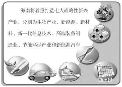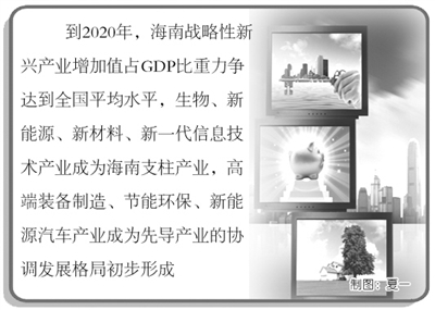 《意见》提出,未来5至10年,海南将着重打造生物、新能源、新材料、新一代信息技术、高端装备制造、节能环保、新能源汽车等七大战略性新兴产业,以及到2020年的分两步走发展目标:
