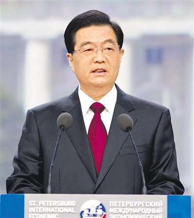本报俄罗斯圣彼得堡6月17日电 记者李垂发 姚强 安丰琴报道:第十五届圣彼得堡国际经济论坛开幕式17日在俄罗斯圣彼得堡举行,国家主席胡锦涛出席论坛开幕式并发表重要演讲。胡锦涛指出,中国将继续高举和平、发展、合作旗帜,始终不渝奉行互利共赢的开放战略,欢迎世界各国积极参与中国发展、分享中国发展带来的机遇,中国愿与世界各国一道开创互利共赢、共同发展的美好未来。