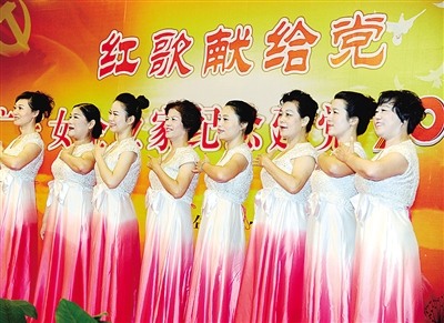 6月17日,广东女企业家们在演唱《唱支山歌给党听》。当日,“红歌献给党”——广东女企业家纪念建党90周年演唱活动在广州举行。 新华社记者 刘大伟摄