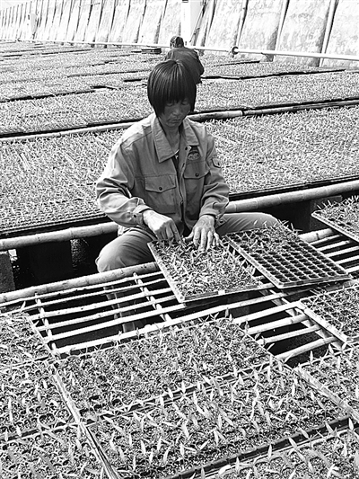 左图 种苗产业正成为寿光市蔬菜产业的重点发展方向。工人在寿光新世纪种苗有限公司的日光温室大棚里育苗。 本报记者 鲍晓倩摄