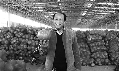 56岁的田亚力是寿光本地人,从1995年开始就在寿光卖南瓜,已经小有名气,人称“南瓜大王”。“一开始是跟人合伙,经营20多个品种。后来才慢慢地转向专门卖南瓜。”田亚力说,“卖菜时间久了,慢慢总结出一条经验:专注一个品种,质量好把关,每个季节的产量也好控制,经营风险就小了。”