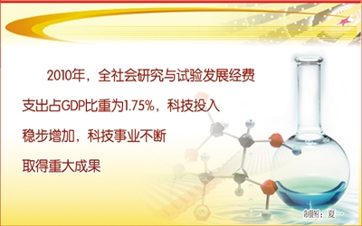 2010年,全社会研究与试验发展经费支出占GDP比重为1.75%,科技投入稳步增加,科技事业不断取得重大成果。