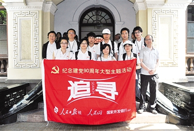 图1:人民日报记者与参加人民日报社“追寻”活动的大学生们在南京合影。