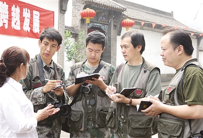 图3:解放军报记者在山西武乡王家峪八路军总部旧址纪念馆采访。