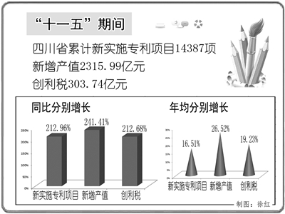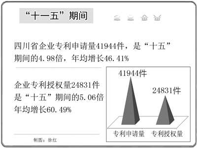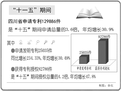 在此推动下,截至2010年底,四川累计专利申请量达202439件,累计专利授权量达124358件,有效专利数为66644件,累计专利申请、授权量均居全国第九位、西部第一位。