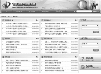 今年4月26日,时值第十一个世界知识产权日,国家知识产权局在其官网上正式启动了智能化专利检索与服务系统。记者注意到,除了专利检索的基本功能,专利分析、服务信息、互动交流等板块成为该系统的亮点。比如专利分析中,又包括分析文献库、定制分析、快速分析、高级分析等分析工具,都是几种专利信息利用的主要、基本的分析方法。在服务信息栏目中,主要包括“专利统计快报”、“专利新视点”、“专利知识”、“政策法规”、“经典案例”、“申请指南”等内容,更新及时,内容丰富。