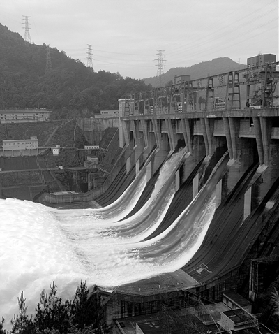 6月21日上午,新安江水库开闸泄洪。当日9时38分,位于浙江省建德市的新安江水库的三个排水孔开始泄洪。 新华社记者 鞠焕宗摄
