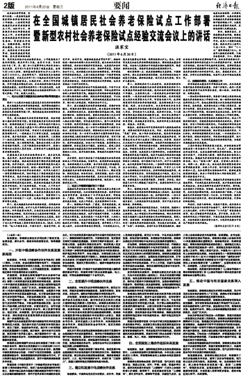 在全国城镇居民社会养老保险试点工作部署 暨新型农村社会养老保险试点经验交流会议上的讲话