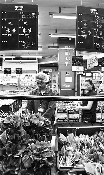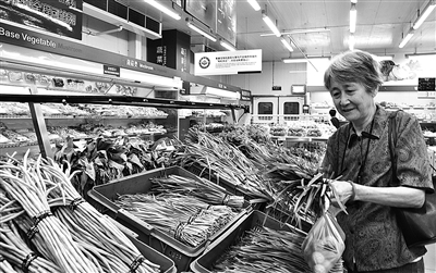 图1 在合肥包河区一家超市内,顾客正在选购蔬菜。优惠的菜价让社区居民喜上眉梢。