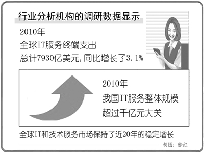 近年来,随着信息产业新技术、新业态、新模式不断涌现,IT服务逐渐成长为拉动信息产业增长的重要板块。特别是在《进一步鼓励软件产业和集成电路产业发展的若干政策》指引下,我国IT服务业将迎来产业层次和技术水平提升的重大机遇。