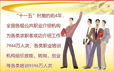从上世纪80年代初期开始,为适应双向选择和劳动力流动的需要,各地相继建立了一些职业介绍机构。目前,所有城市街道社区全部建立了劳动保障工作平台,70%以上的乡镇建立了劳动保障工作机构,全国已经基本形成市、区(县)、街道(乡镇)、社区四级公共就业服务网络,逐步实现了职业介绍、职业培训、就业指导和劳动保障事务代理等的“一条龙”服务。2009年末,全国有各类职业介绍机构37123所(其中公共职业介绍机构24921所),各类职业培训机构27250所。“十一五”时期的前4年,各级公共职业介绍机构为各类求职者成功介绍工作7944万人次,各类职业培训机构组织技能、转岗、创业等各类培训9596万人次。