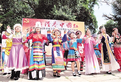 ③ 图③ 6月25日,“党旗漫卷中国红——走进56个民族家庭十年回访大型接力采风活动”在北京中华民族园举行。 本报记者 张 欣摄