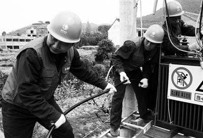 浙江奉化供电局萧皇庙镇供电营业所职工正在为林家村的排灌低压线路进行改造施工。时下正值备耕时节,该局投资1400万元对36个村的农排低压线路进行改造,保证备耕用电。