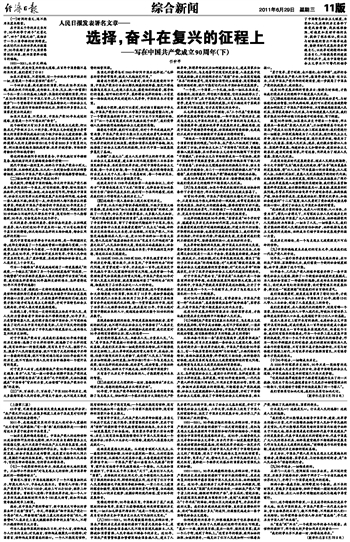 在中国,从来不缺少智识卓越的精英,不缺少宏图大略的豪雄。梁启超以他“如山石崩裂,似岩浆喷涌”的雄文,征服了一代青年,却认定中国经济落后,大多数人民无知识,“绝对不能建设劳动阶级的国家”。袁世凯以他的权谋窃取了辛亥革命的果实,留下了悖逆时代潮流的千古骂名。伟大的先行者孙中山虽发出振聋发聩的“三民主义”呐喊,却终因历史的局限而大业未竟、壮志难酬。只有共产党人,不仅坚定地选择站在人民一边,更以90年始终如一的伟大实践,将人民这块“造屋者抛弃的石头”变成自己所构建的“房屋之柱石”。人民共和国的大厦,因这柱石而巍然挺立;社会主义的伟大事业,因这柱石而基业长青;中华民族的复兴梦想,因这柱石而呈现曙光。