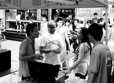 四川省江油市日前举行“2011戴尔阳光创富学堂”全国巡展首发仪式,该活动是戴尔专为“家电下乡”定制的。据介绍,戴尔共有52款产品入围国家“家电下乡”项目。图为工作人员为消费者讲解戴尔下乡电脑产品。 赵 槿摄