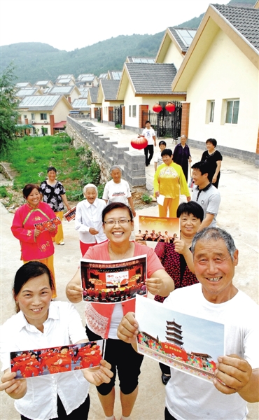 | 在庆祝中国共产党成立90周年之际,记者来到北京平谷区挂甲峪村。正在自发排练庆祝节目的村民纷纷围拢过来,举着反映该村由过去出了名的穷村到如今成为北京山区建设示范样板村的照片自豪地展示。挂甲峪村146户、460口人,目前人均纯收入已超过22500元。 |