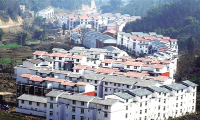 | 四川都江堰向峨新村全景。经过3年灾后重建,如今的向峨乡风景如画,产业兴旺。 |