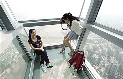 | 广州塔的透明观光平台已成为观光者俯瞰广州新貌、摄影留念的热门景点。 |